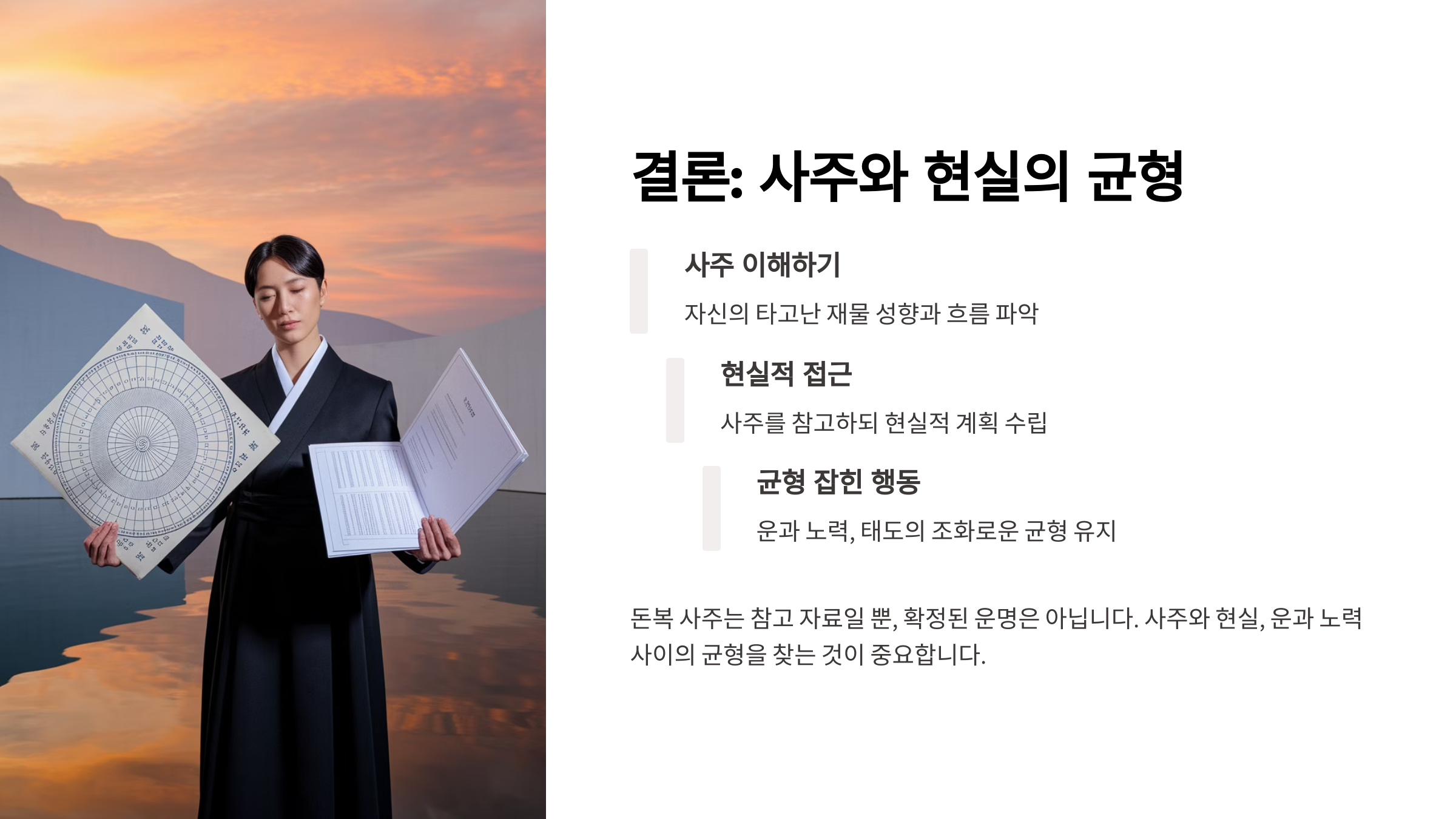 자, 이제 본격적으로 돈복 사주와 현실 간의 간극을 하나씩 짚어볼게요. 내가 생각했을 때 이 주제는 사주를 단순히 '운세'로 받아들이는 사람보다, 나를 이해하고 개선하려는 사람에게 훨씬 의미가 있어요.