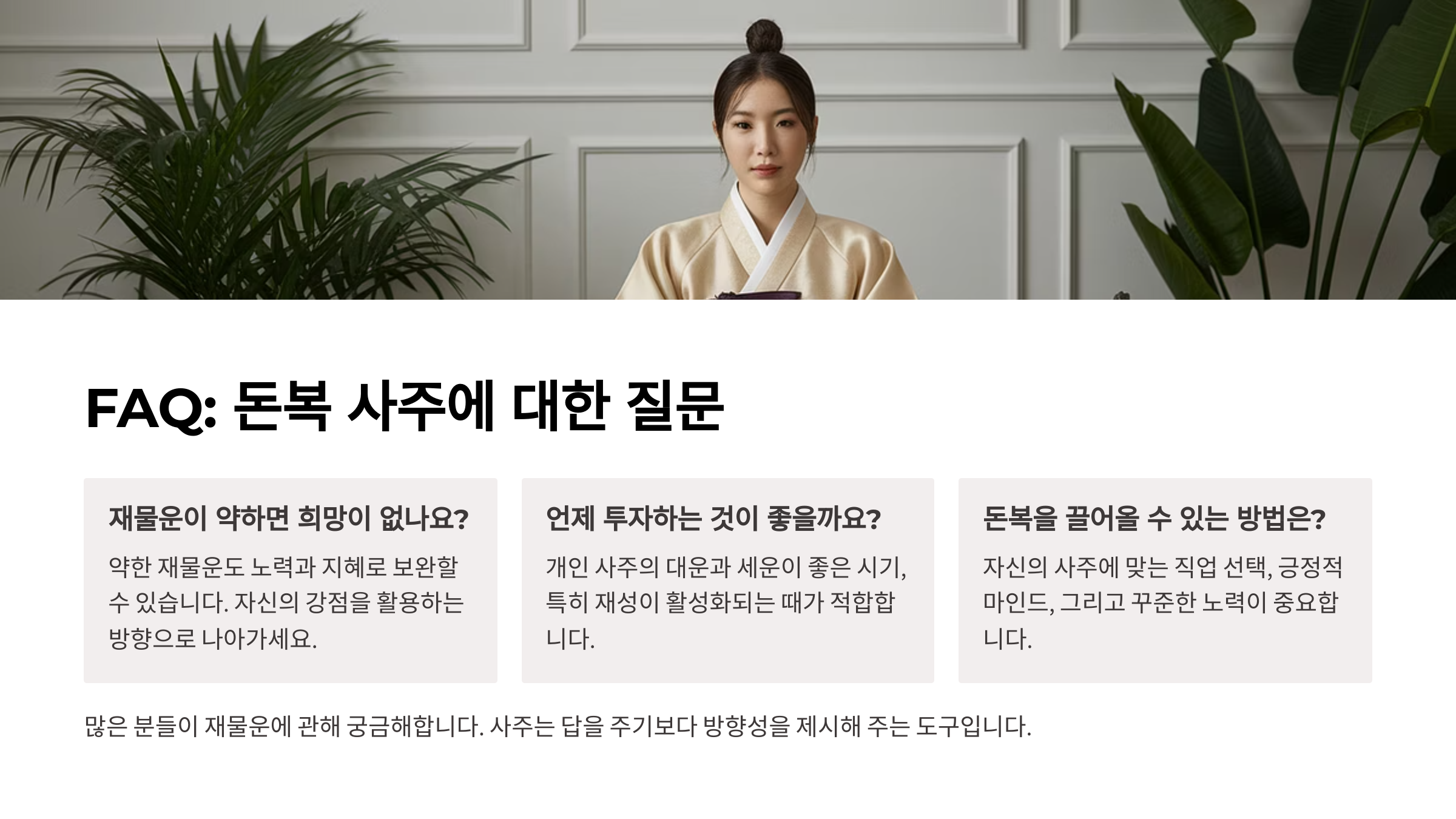 Q4. 돈복 없는 사주도 부자가 될 수 있나요?