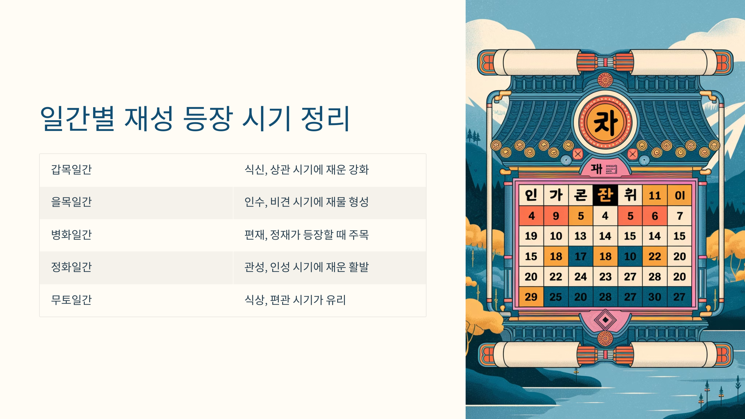 🗓 일간별 재성 등장 시기 정리