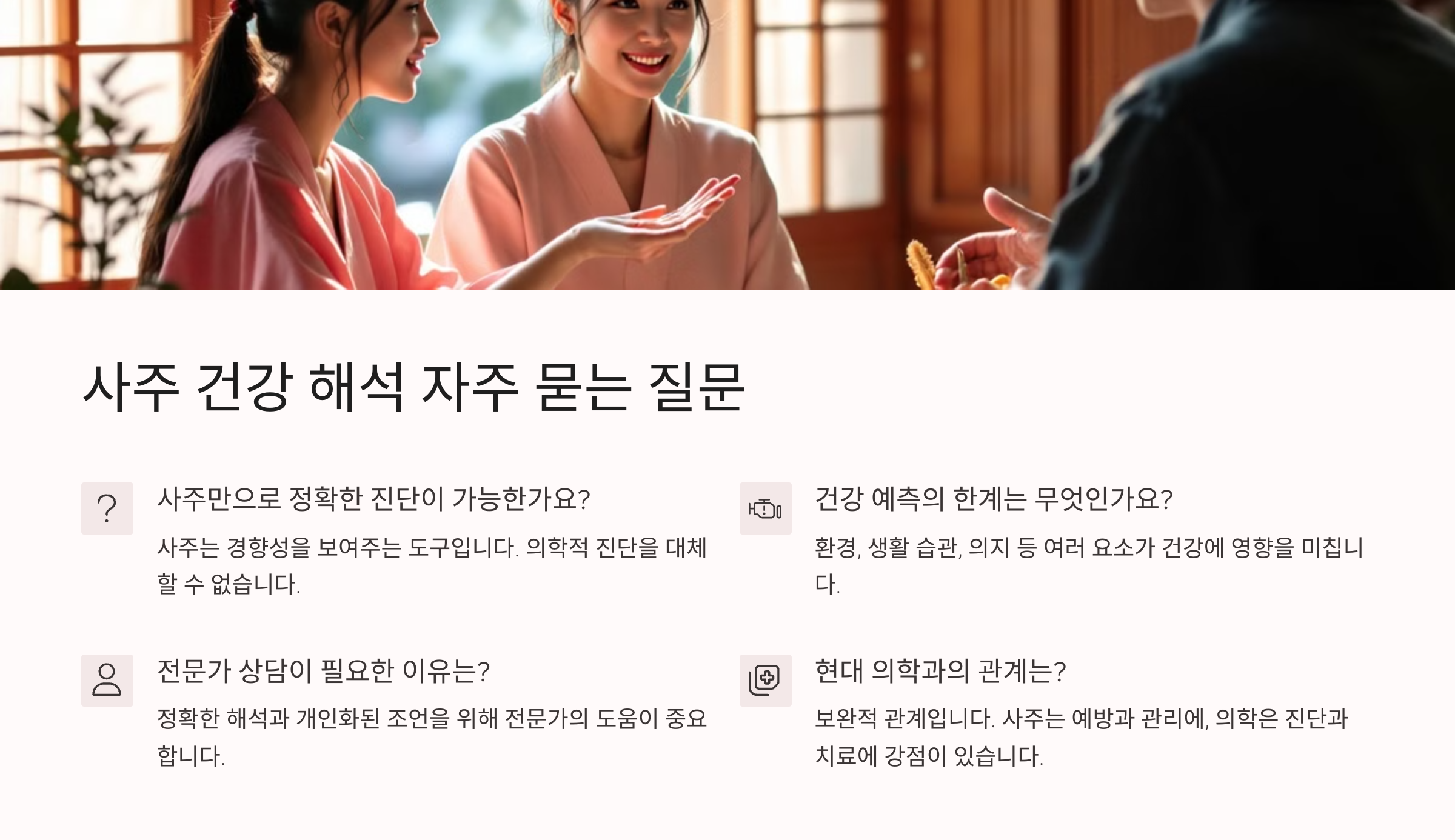 그래서 사주는 건강 진단서가 아니라 건강을 가꾸는 지혜서라고 생각하면 돼요. 미리 조심하고, 더 나은 방향으로 자신을 바꾸는 게 사주를 활용하는 가장 멋진 방법이에요 💪