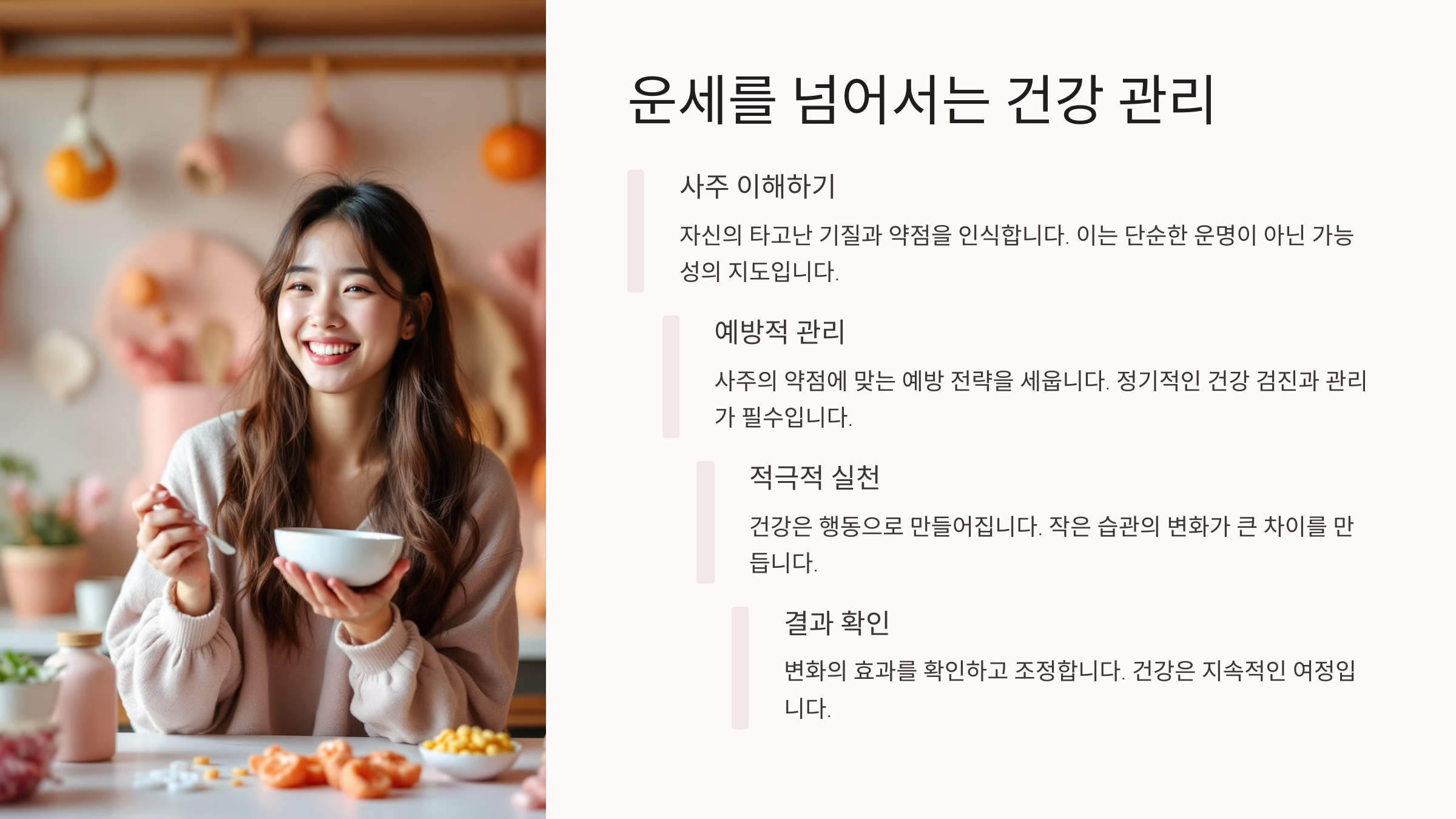 운보다 중요한 건 지금의 선택이에요. 오늘 물 한 잔을 마시고, 가벼운 산책을 나가고, 누군가와 진심으로 대화하는 그 순간들이 결국 나를 건강하게 만드는 거예요. 병이 있든 없든, 지금의 내가 내 삶을 결정해요.