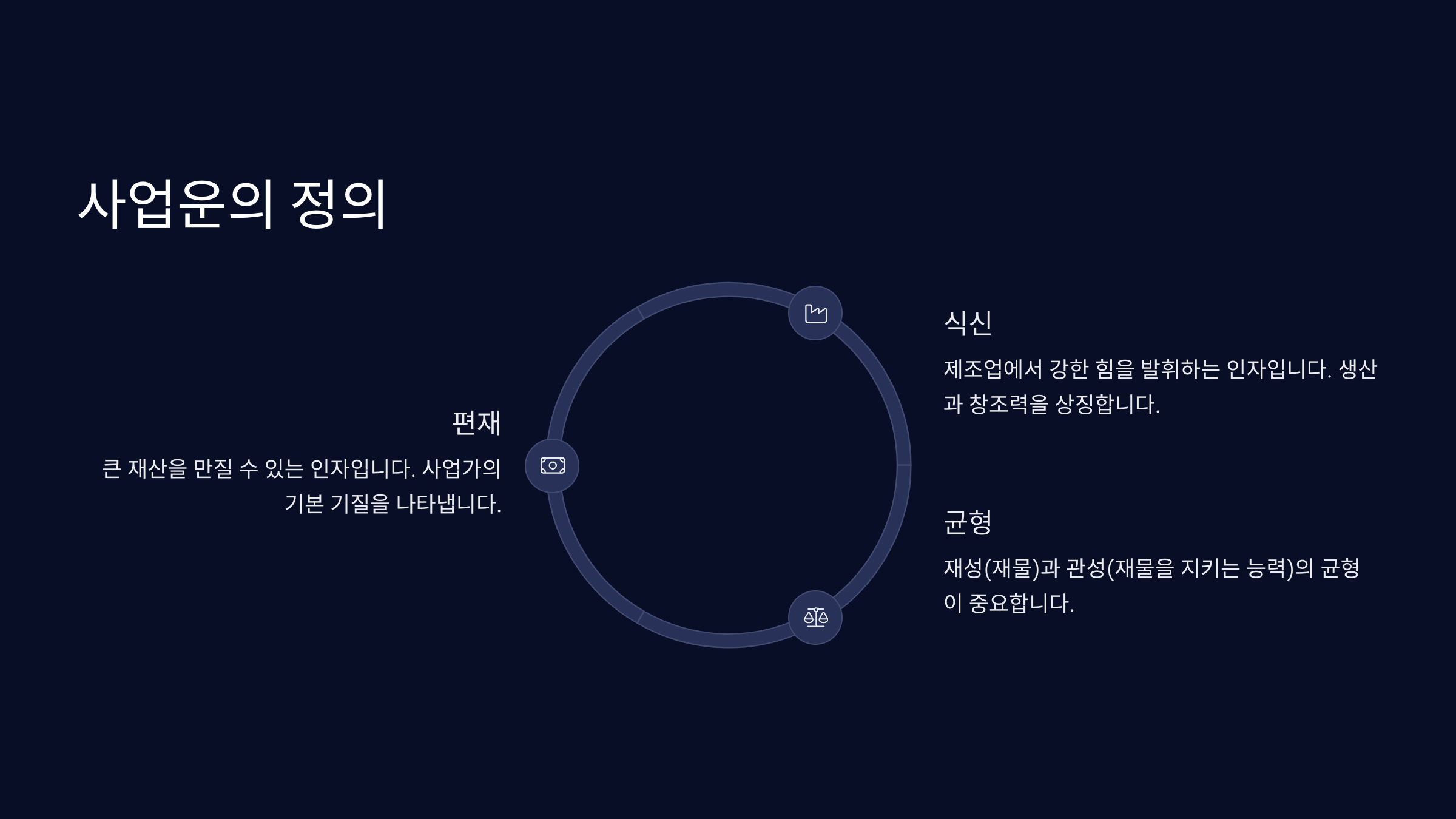 사주에서 말하는 사업운은 단순히 "돈을 벌 수 있는 능력"을 뜻하는 게 아니에요. 이건 '내가 독립적으로 무언가를 주도하고, 위험을 감수하면서 운영할 수 있는 기질'과 관련된 개념이에요. 즉, 직장이나 조직에 속하지 않고도 스스로 무언가를 만들어낼 수 있는 힘을 뜻하죠.사주에서는 일반적으로 재성(財星), 식신(食神), 상관(傷官), 편관(偏官), 편인(偏印) 같은 요소들이 사업운과 밀접하게 연관되어 있다고 봐요. 이 요소들이 어떻게 배치되고 조화를 이루느냐에 따라 그 사람의 사업 능력이나 운의 흐름을 분석하죠.