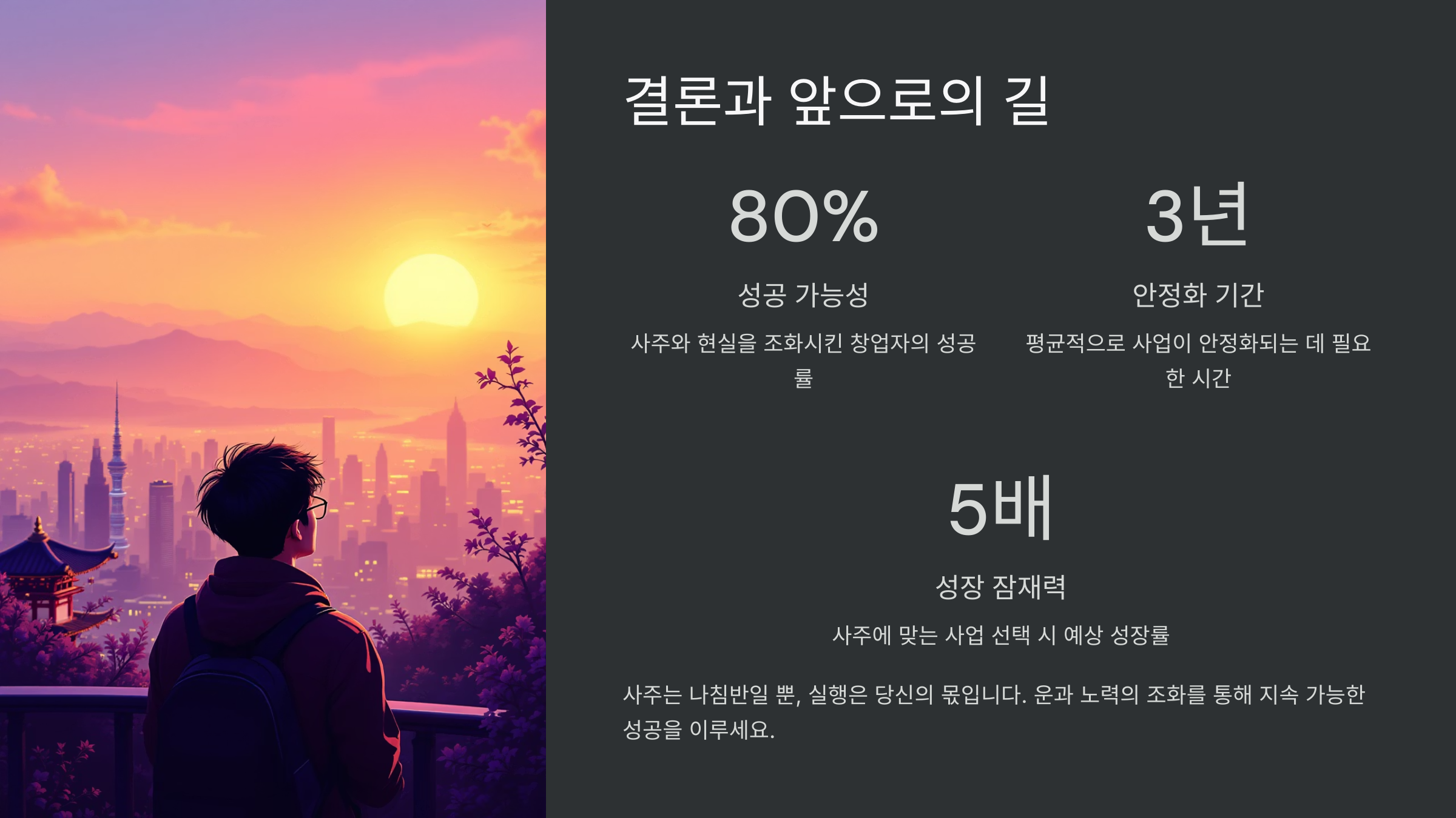 ✨ 여기까지! 사주에 사업운이 있을 때 어떻게 시작하고, 실행하며, 버티고, 성장할 수 있는지 완전히 정리해봤어요!