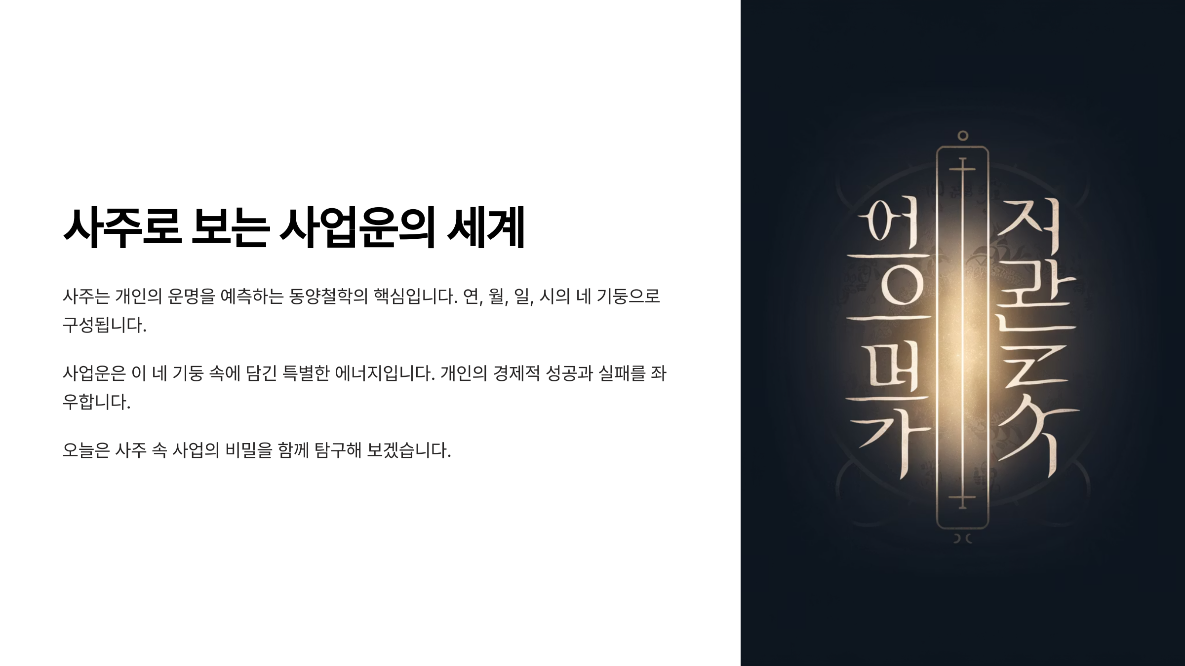 사주는 단순히 운을 점치는 도구가 아니라, 나의 타고난 성향과 가능성을 읽어내는 인생의 지침서 같은 존재예요. 그중에서도 '사업운'은 현대인들이 관심을 많이 가지는 요소 중 하나인데요. 누군가는 평생 월급을 받으며 살아가는 게 편하고, 또 누군가는 사장이나 대표가 되어야 진짜 자기 길을 걷는다고 하죠. 이런 성향은 사주팔자 속에 뚜렷하게 드러나는 경우가 많답니다.