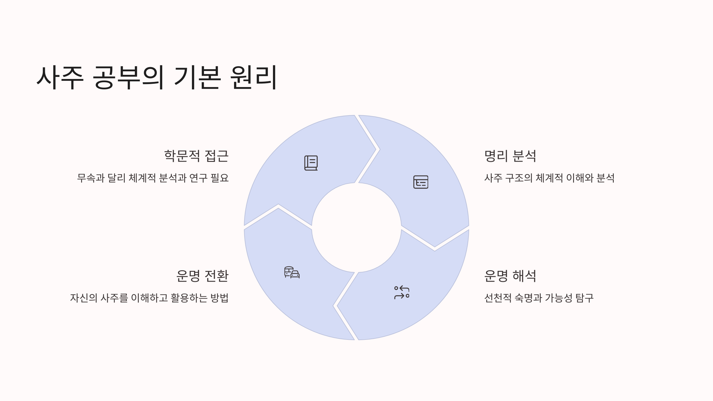 사주의 구조를 수학 공식처럼 외우기보다는 '왜 이런 구조로 되어 있을까?'를 생각하며 접근하는 게 더 좋아요. 개념을 생활 속 예시와 연결하면 훨씬 이해가 쉬워지거든요 💡