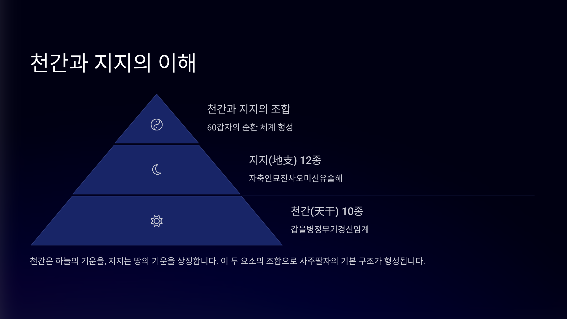 이제 사주 네 기둥이 무엇인지 알게 되었으니, 다음은 그 기둥을 구성하는 '천간'과 '지지'가 뭔지 살펴볼 차례예요! 🧠