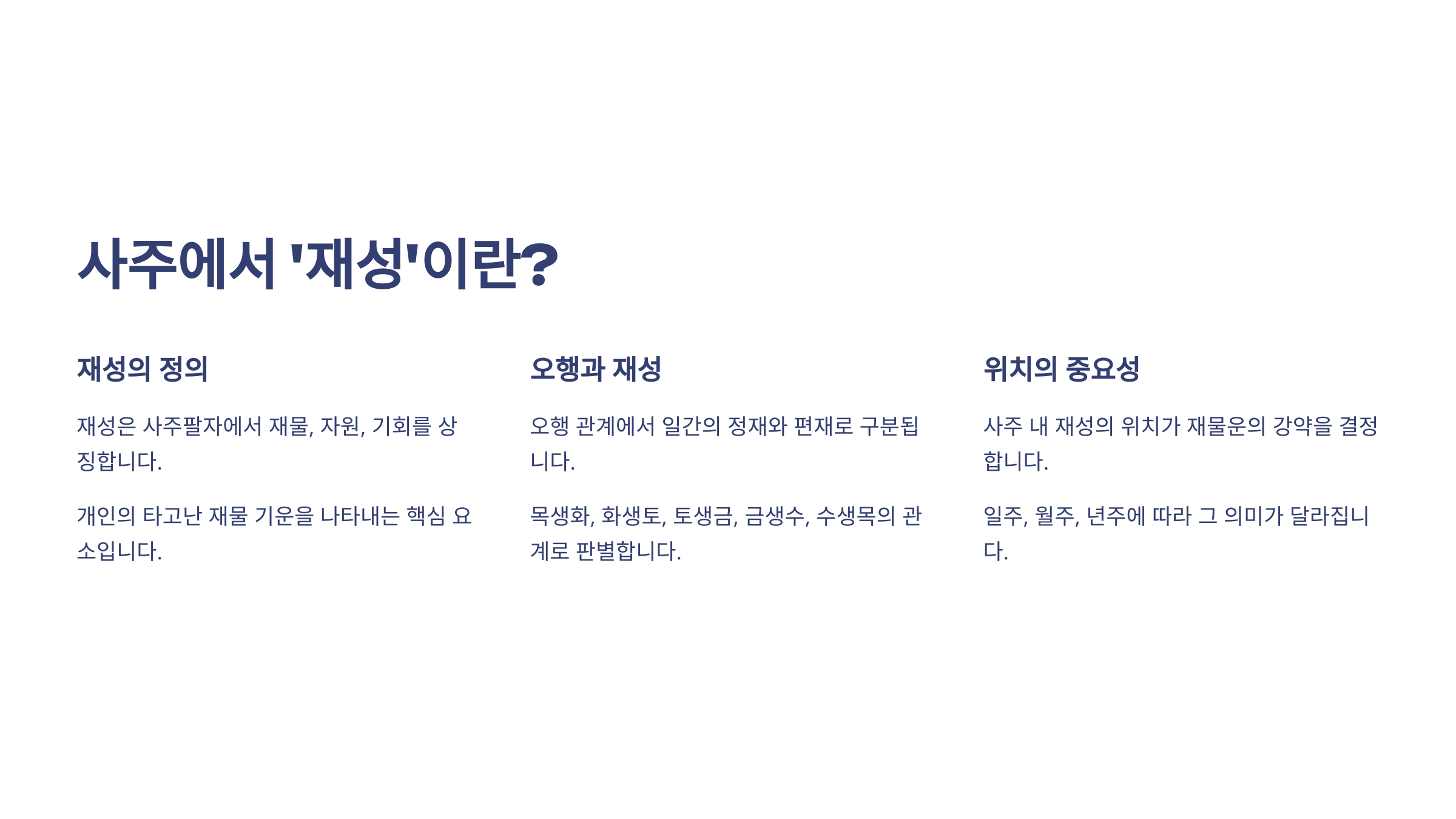 "내 사주엔 재성이 아예 없대요. 그럼 전 평생 가난한가요?" 👉 결론부터 말하면 그렇지 않아요!