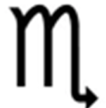 전갈의 꼬리를 나타내며, 상징 동물은 전갈, 신체부위는 생식기를 관장하며 주인행성은 화성(火星), 명왕성이며, 4원소는 물(水)에 해당됩니다. 천칭자리 사람들은 강렬하고 비밀스러운 면이 있습니다.