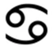 게의 집게발을 나타내며, 상징 동물은 게, 신체부위의 가슴과 위를 뜻하고 주인행성은 달(月)과 4원소는 물(水)에 해당됩니다.