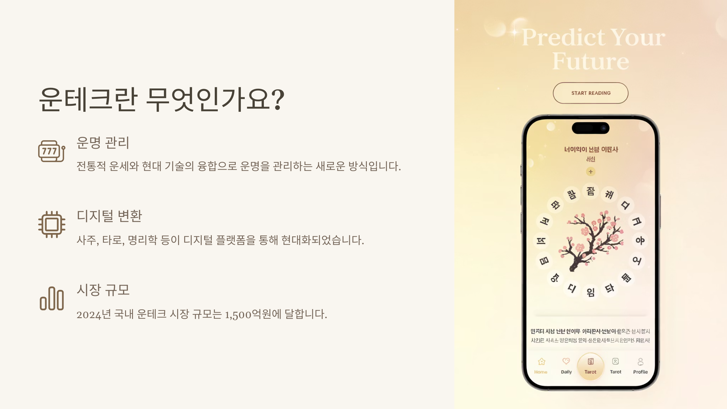 ‘운테크’는 ‘운(Luck)’과 ‘재테크(Fintech)’의 합성어로, 자신의 사주나 운세를 분석해 돈이 들어올 수 있는 시기나 방향을 전략적으로 활용하는 걸 말해요. 마치 주식 시장의 차트를 분석하듯, 사주의 흐름을 읽고 재무적 결정을 내리는 거죠. 이 개념은 기존의 '심리 위안'에서 벗어나 구체적인 행동 전략으로 진화하고 있어요.