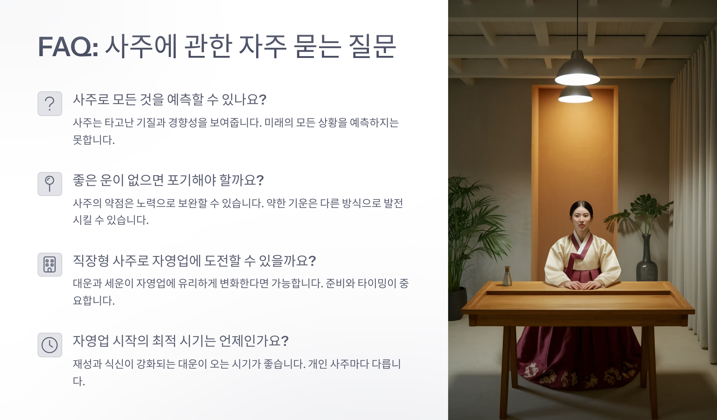 Q5. 자영업 성공하려면 사주 말고 뭘 더 봐야 할까요?