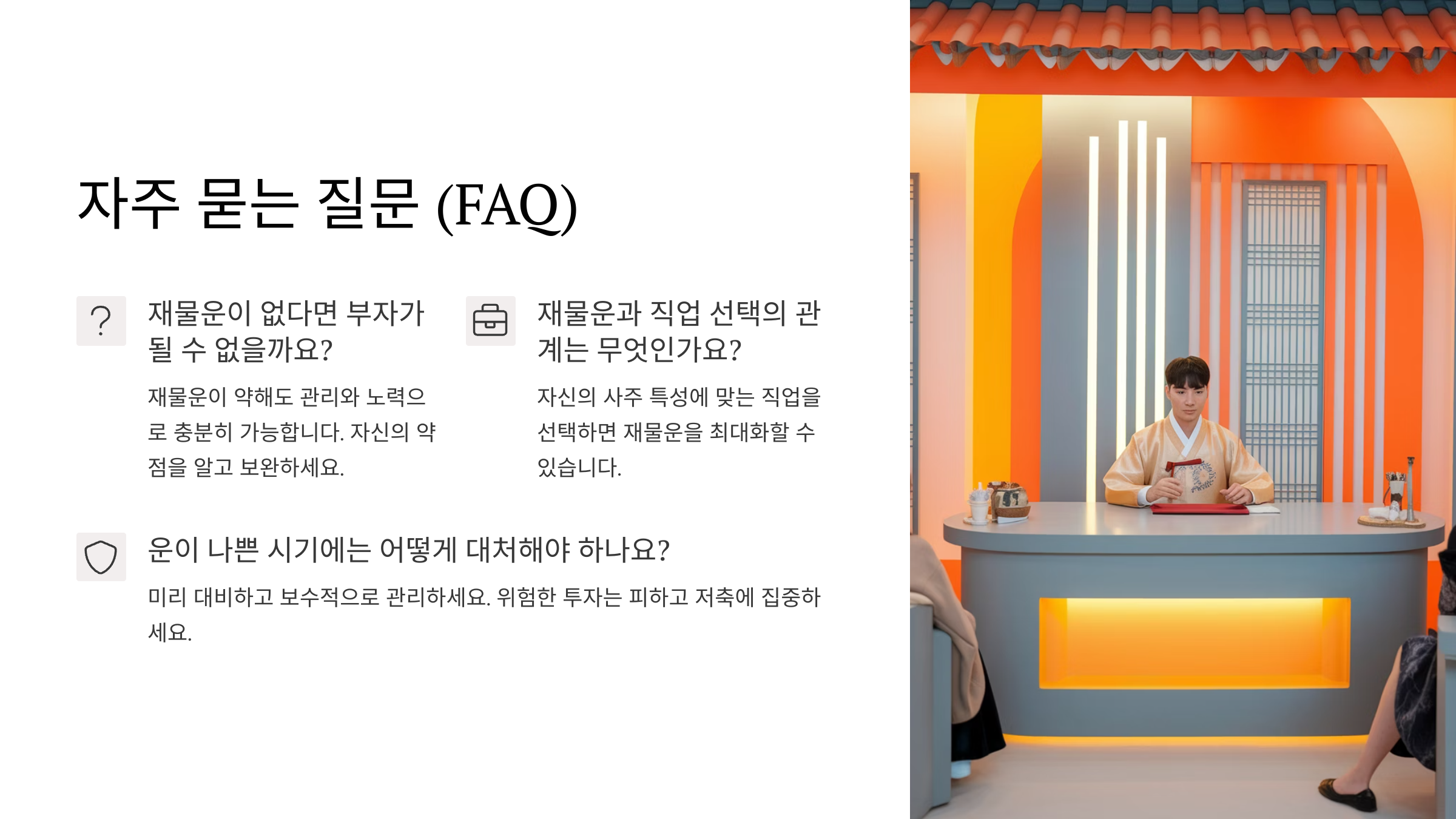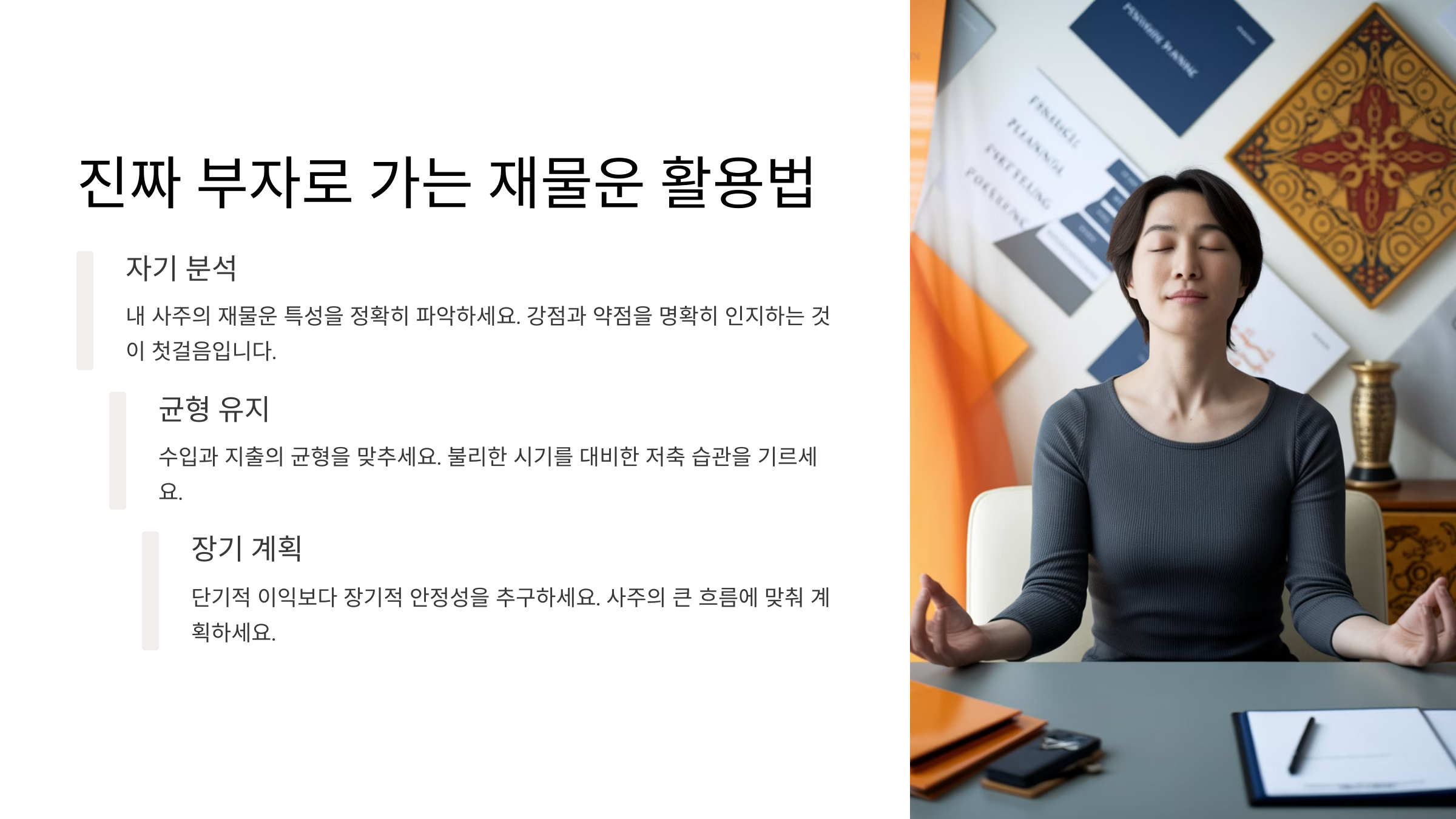 즉, 재물운은 씨앗이고 키우는 건 '습관과 판단력'이라는 거예요.
