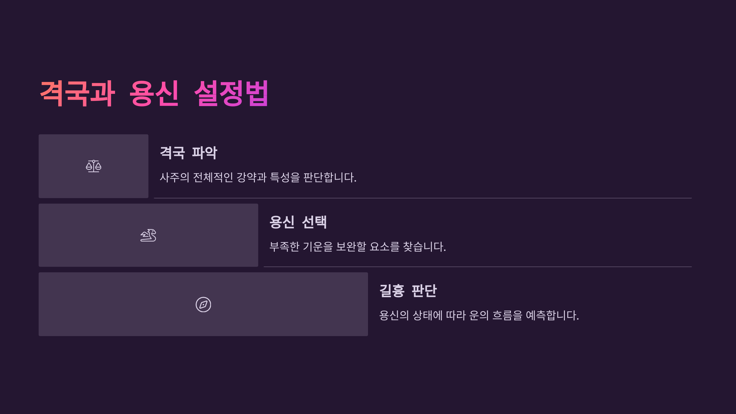 👉 다음은 사주 해석의 핵심인 격국과 용신을 어떻게 설정하는지 살펴볼게요! 🔍