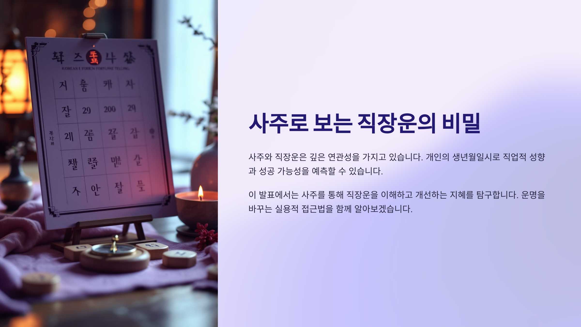 실제로 이런 이유들 때문에, ‘능력이 없어서’가 아니라 ‘타이밍이 안 맞아서’ 직장에서 어려움을 겪는 사람들이 정말 많아요. 타고난 사주가 나빠서가 아니라, 그 흐름을 모르고 살아왔기 때문에 문제를 해결하지 못했던 거예요.