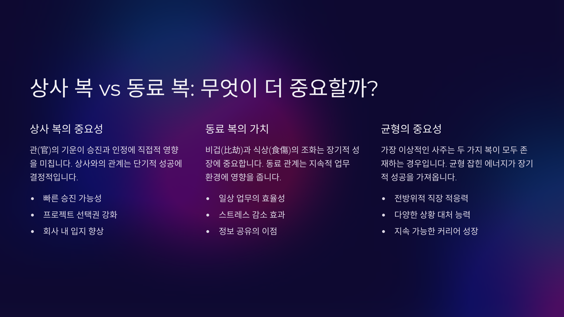 ⚖ 상사 복 vs 동료 복, 무엇이 더 중요할까?