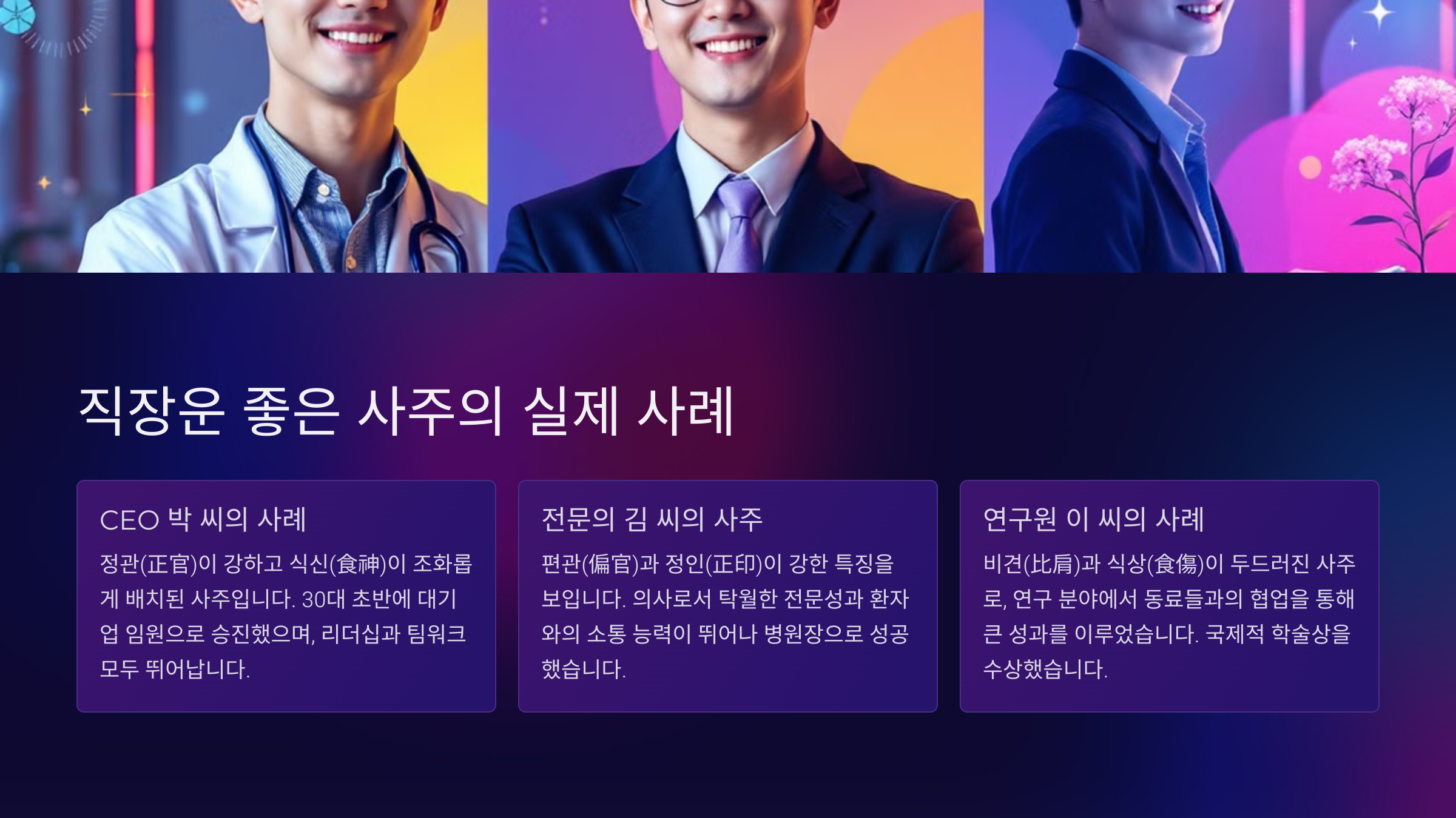 다음 섹션에서는 직장운이 정말 좋은 사주 사례들을 살펴볼 거예요. 실전 케이스를 통해, 이론이 실제에서 어떻게 작용하는지 함께 확인해보자고요! 🔍📈