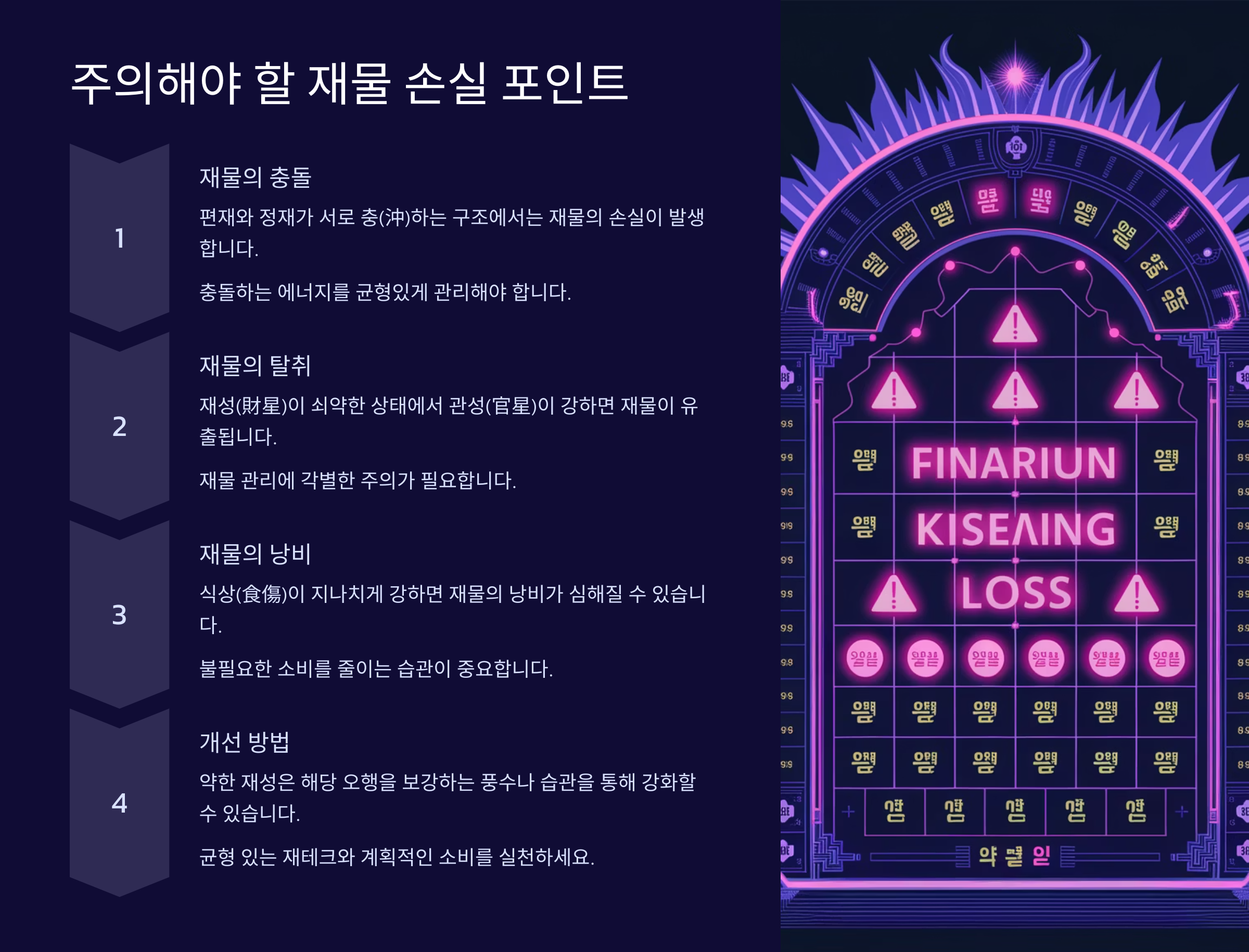 돈은 벌기도 중요하지만, 잃지 않는 것도 똑같이 중요해요. 특히 편재형은 '욕심', 정재형은 '불안'이 재물 손실의 원인이 되기도 하니 꼭 체크해보세요!