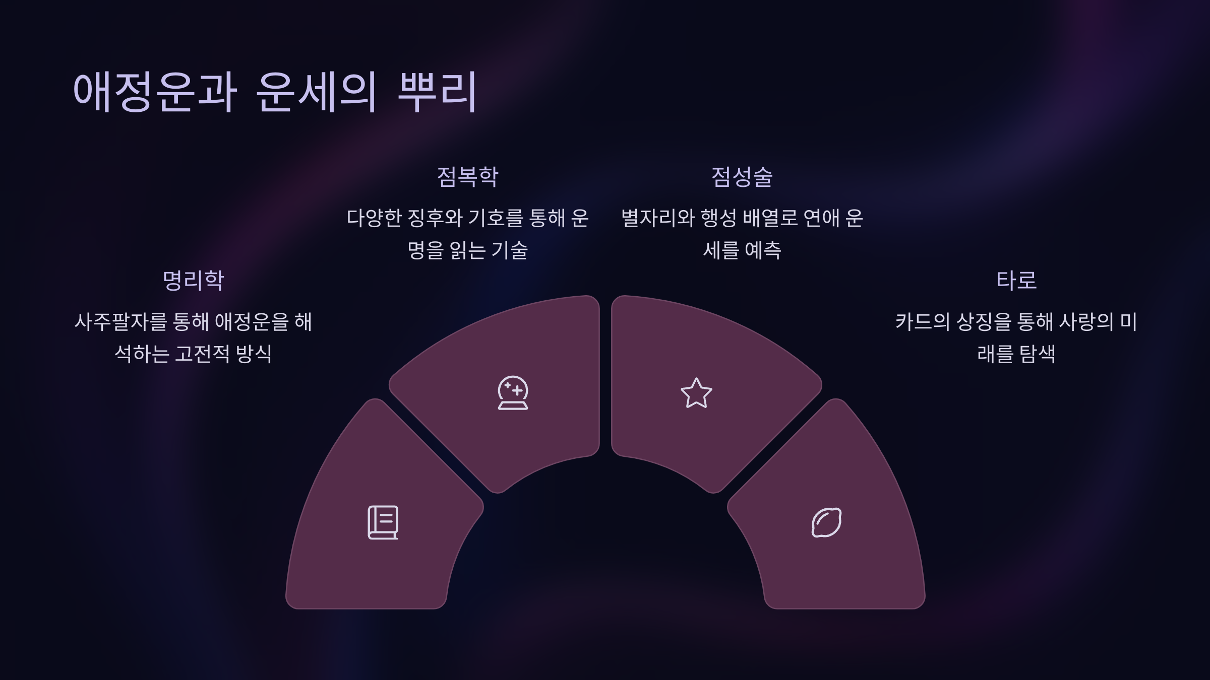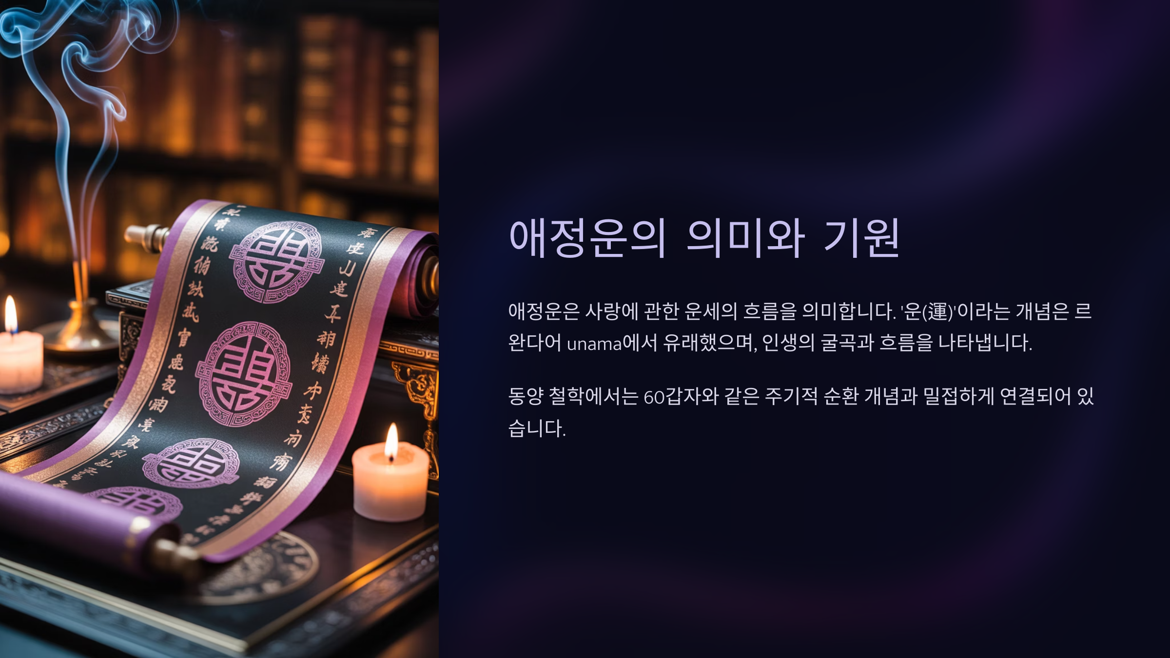 사랑이라는 감정이 워낙 예측 불가능하고 복잡하기 때문에, 사람들은 운세를 통해 마음을 정리하고 싶은 욕구를 느끼게 되는 것 같아요. 그리고 이런 흐름이 '애정운'이라는 개념으로 자리 잡은 거죠.