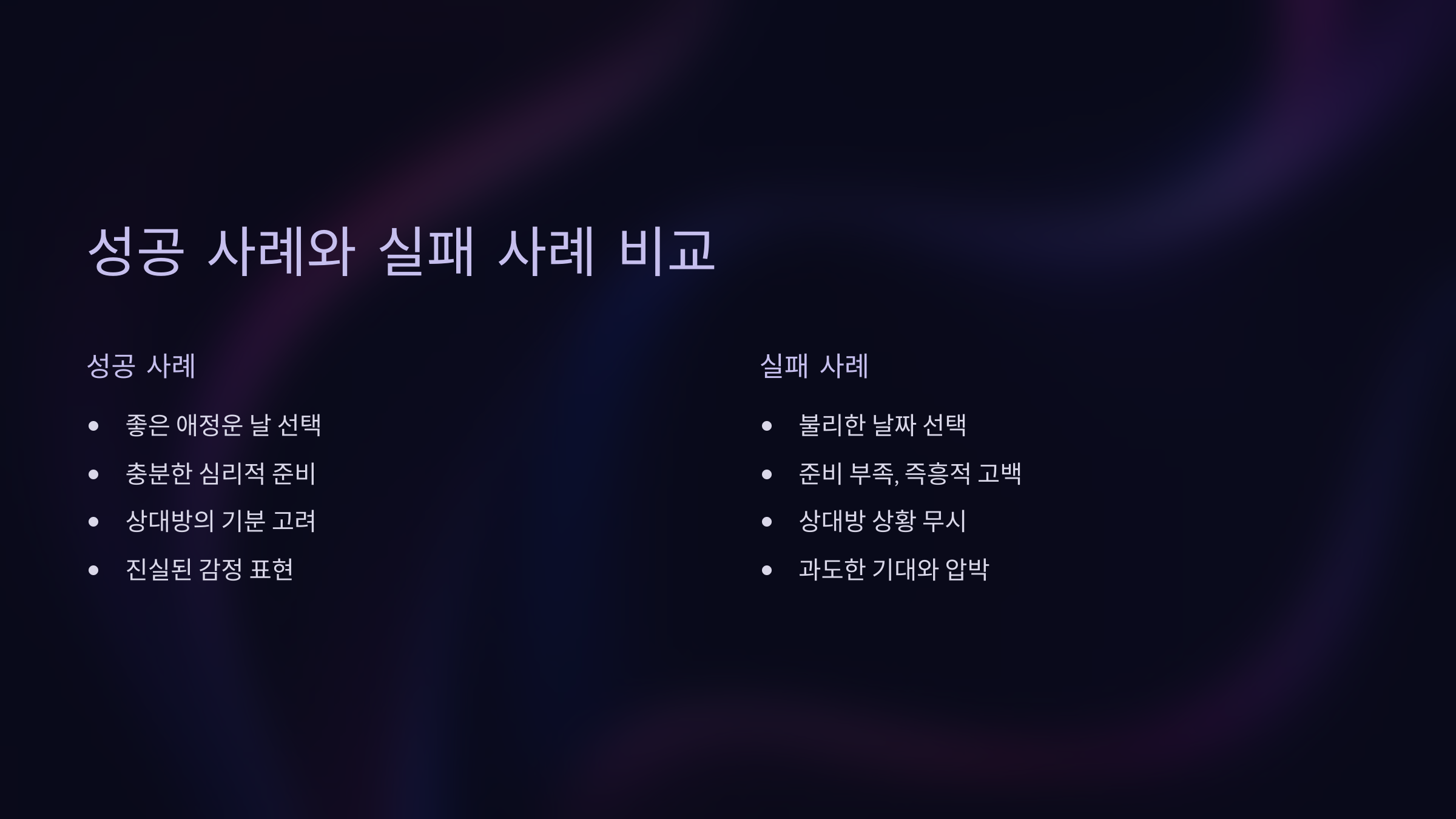 성공 사례와 실패 사례 비교 사람들이 고백에 성공하거나 실패하는 데는 단순히 용기 하나만이 작용하는 게 아니에요. 실제 사례들을 보면 애정운, 분위기, 타이밍, 감정의 교차 같은 요소들이 얼마나 중요한지 느낄 수 있어요. 이 섹션에서는 생생한 고백 경험담을 바탕으로 성공과 실패를 비교해볼게요.